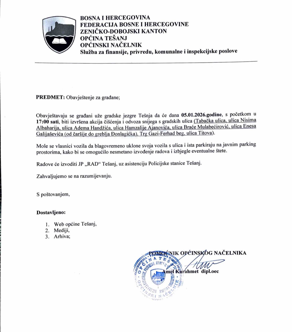 Zbog obilnih snježnih padavina i nepovoljnih uslova za teška teretna vozila na lokalnim cestama , a posebno u zaseocima i uskim putevima, u pojedinim mjesnim zajednicama nije bilo moguće u potpunosti izvršiti redovan odvoz komunalnog otpada.